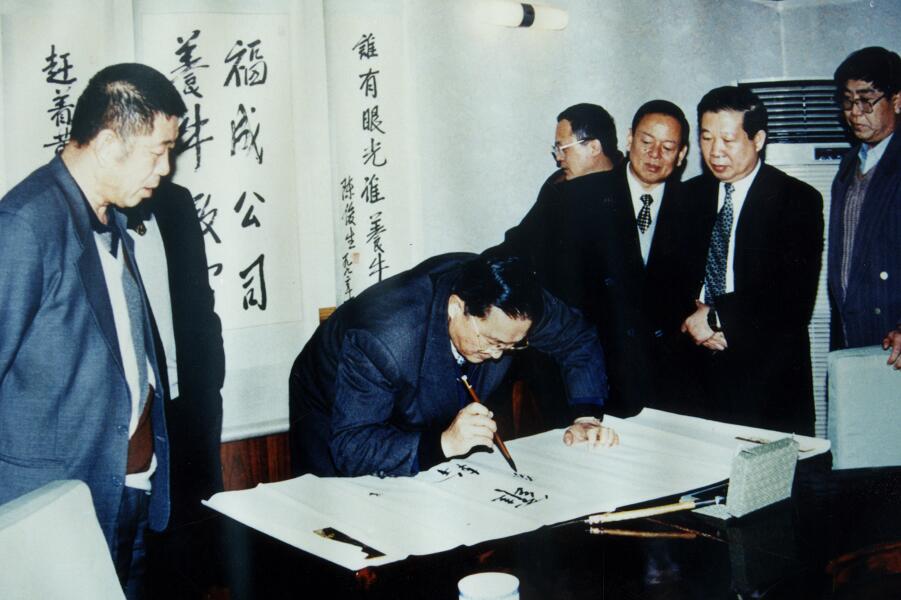 國務(wù)委員陳俊生親自為公司題寫“發(fā)展養(yǎng)牛事業(yè)、造福三河人民”